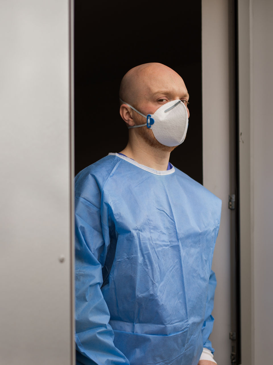 A selection from a series of portraits of NHS healthcare professionals taken during the UK Covid-19 pandemic lockdowns and restrictions beginning in March 2020.